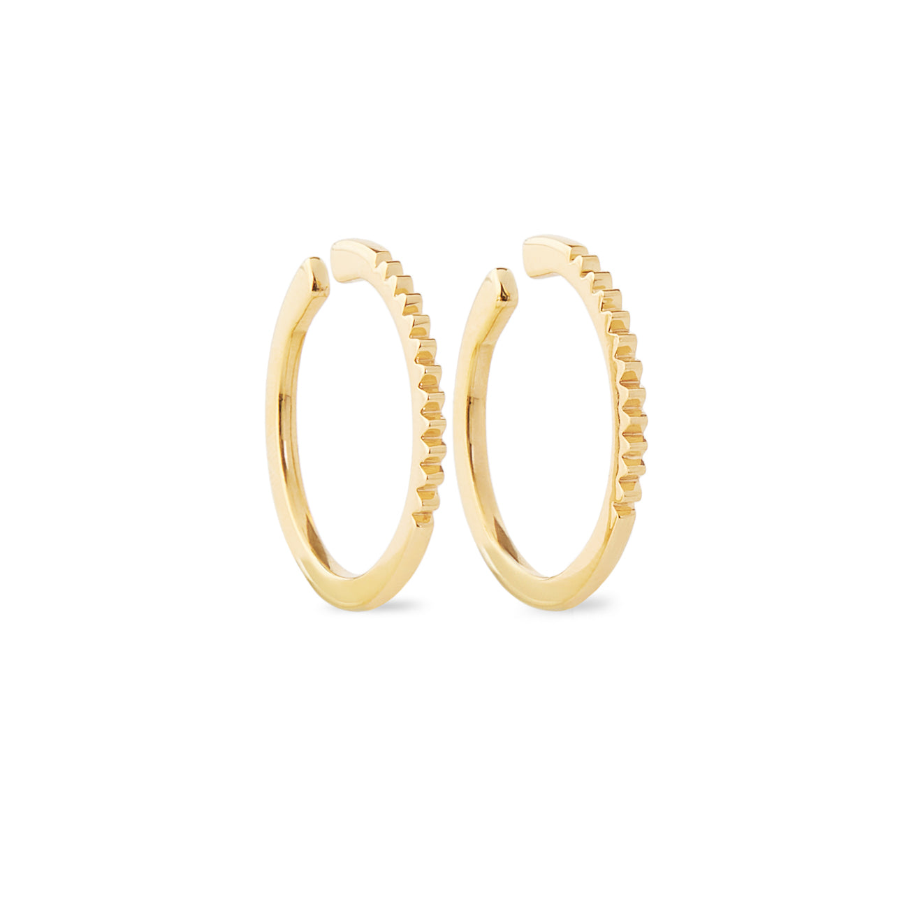No piercing, no problem: You can still invite the sunshine to your ear party with the Aina Ear Cuffs. In 14k yellow gold, with sunrays carved into the solid hoops to echo the shape of the rings and necklaces in the collection, these earrings simply slide on. This renewable jewelry transforms into rings too.