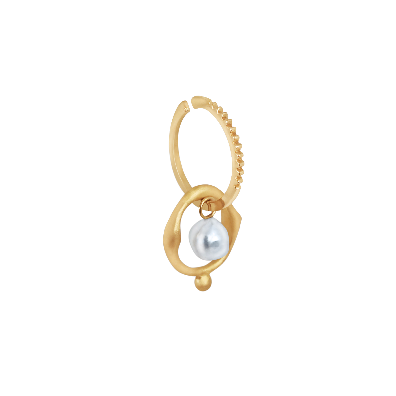 Gathered together, these unique pieces yield incredible character. Each Aina ear cuff provides a gold rim that can support additional pieces. Suspend both the Gabriela figure and the Soleil pearl dangler from the graceful curve of one cuff for an entrancing display of extended beauty, forming a complementary arrangement in which the pearl seems to swell within the embrace of the gold figure.