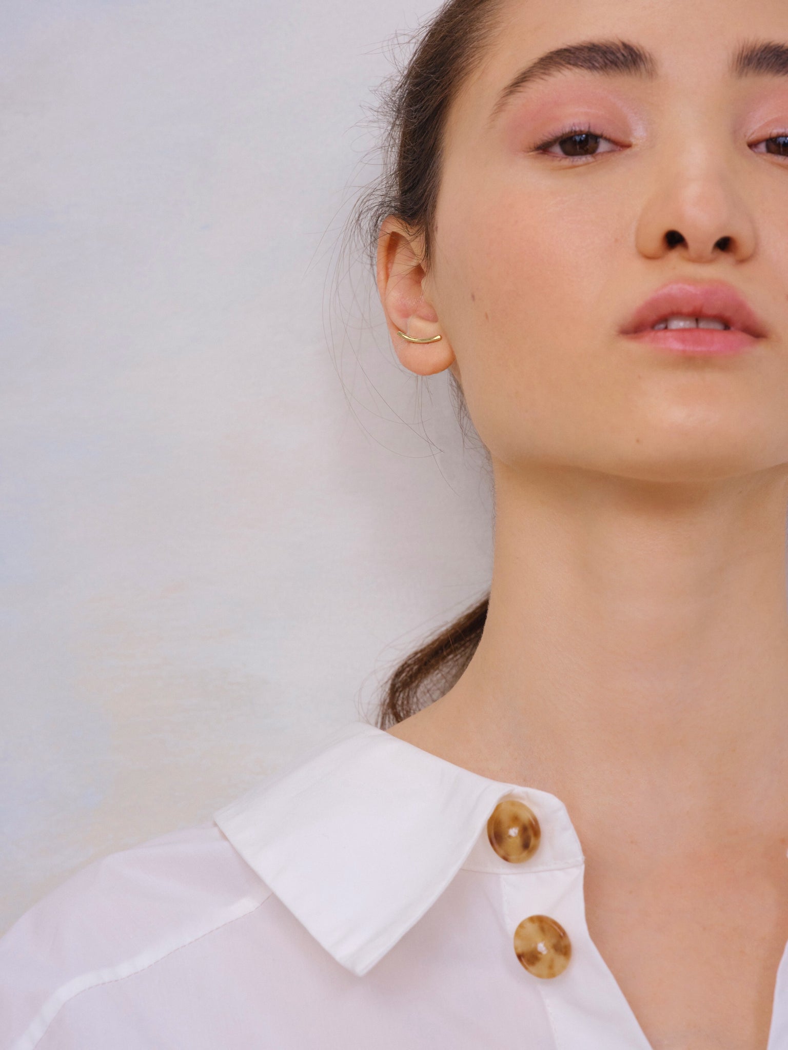 Meet your new urban uniform. A streamlined stud earring that looks sophisticated worn solo, the Nolita is a team player, too: loop a dangler behind the stud, and perhaps join it to an ear cuff for a whole new perspective.